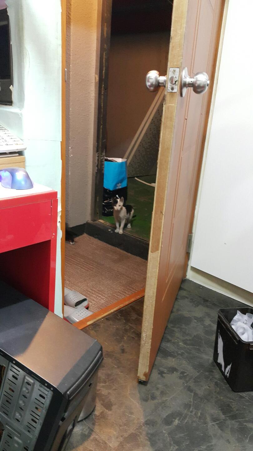 며칠전에 새끼고양이가 왔는데 일하는동안은 밥을 줬는데