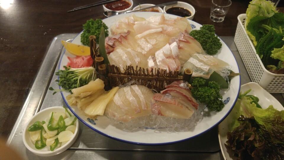 친구의 소개로 갔더니 모듬회 25,000원에 저만큼 주네요. 슬쩍 물어보니 원래보다 많이 준거라고 하네요. 한 5만원어치 쯤 되는듯.. 여기 좀 특이한게 아예 테이블 마다 얼음 버켓에 소주랑 맥주를 담아서 내주네요. 나중에 정산해서 먹으란건데 아무래도 술 시키는 일손을 덜려는거 같은데 나름 괜찮은듯.
