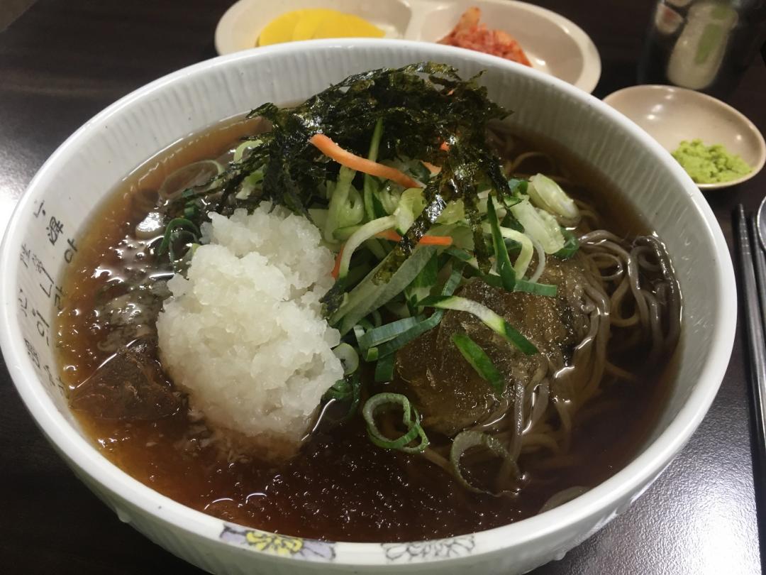 다른 시원한 걸 제치는 모밀의 위력은 저 간 무우에서 나오는 것 같아요. 밖에서 매미 소리가 들리니 더 먹고 싶네요. |