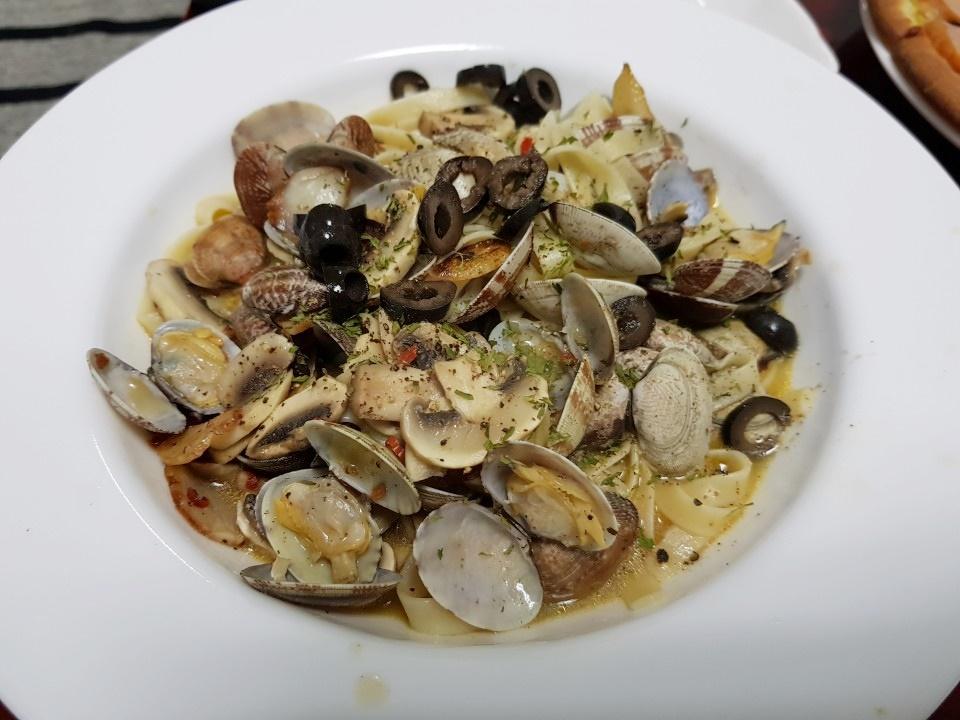 첫 오더다 봉골레 하나 콤비네이션 피자 하나!! |