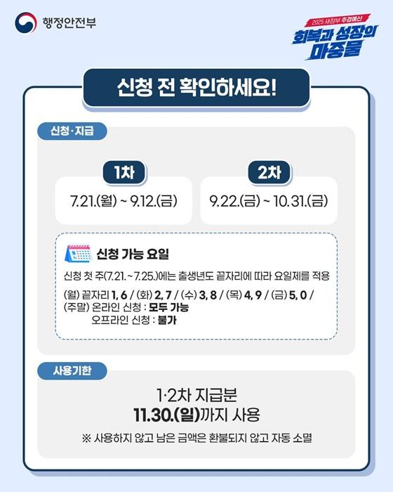 - 대상: 만 19세 이상 국민, 소비쿠폰 1차 수혜자 중 미사용·미참여자 포함