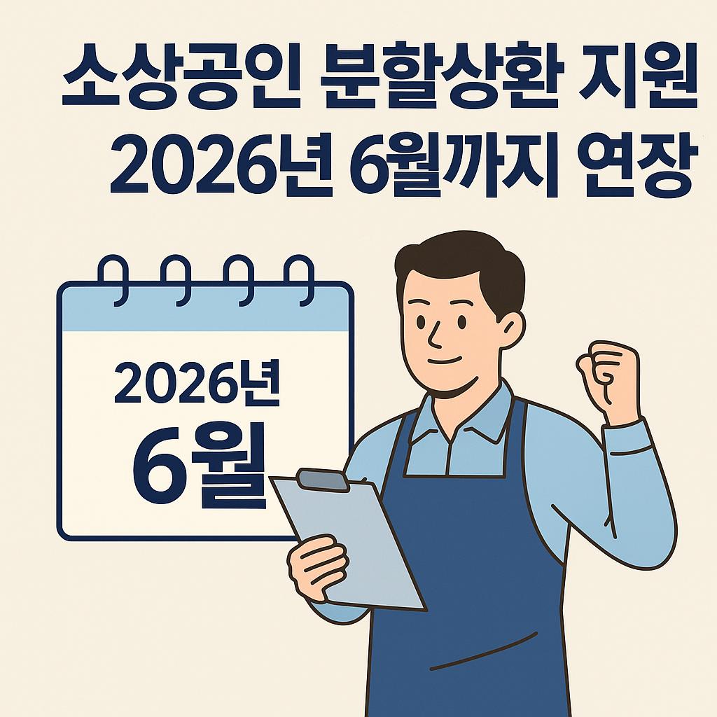 코로나19로 어려움을 겪은 소상공인을 위해 분할상환 지원제도가 2026년 6월까지 연장됩니다. 대출을 한꺼번에 갚기 힘든 경우, 원리금을 나눠서 최대 7년간 갚을 수 있도록 도와주는 제도예요. 신규 신청자는 물론 기존 이용자도 추가 신청이 가능합니다.