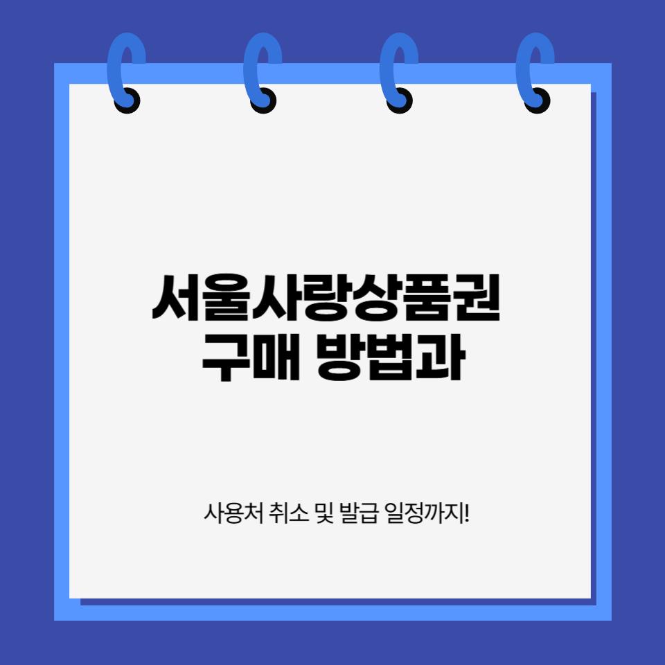 이 글에서는 서울사랑상품권의 구매 방법, 사용처, 취소 및 환불 방법, 2025년 발급 일정까지 한눈에 정리해드립니다.