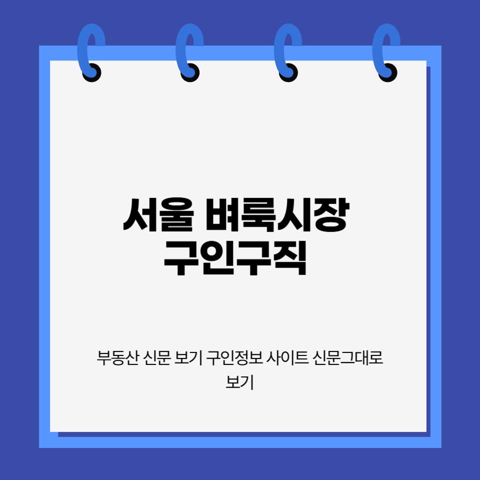 서울 벼룩시장 구인구직 & 부동산 정보, 신문 그대로 보기 꿀팁!
