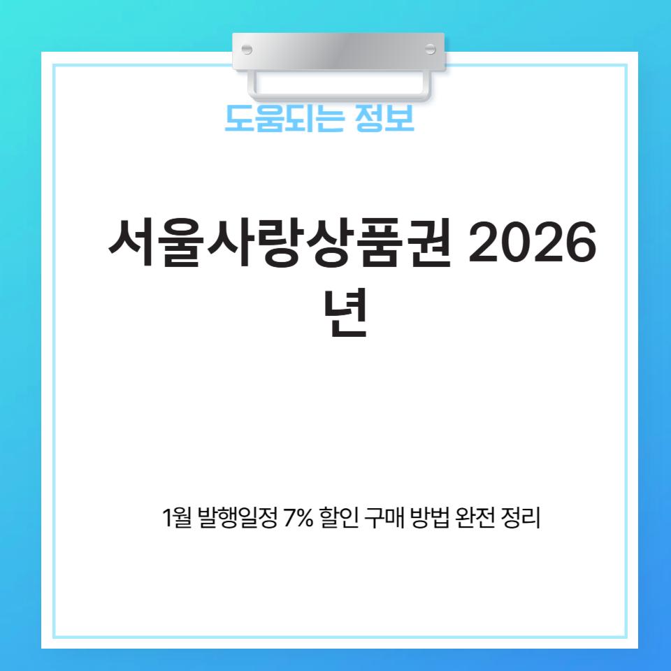 2026년 1월 서울사랑상품권 발행일정 및 7% 할인 구매 방법 완전 정리