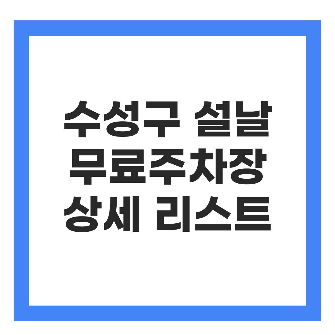 2026 설날 대구 수성구 방문 시 필독! 명절 무료주차장 총정리