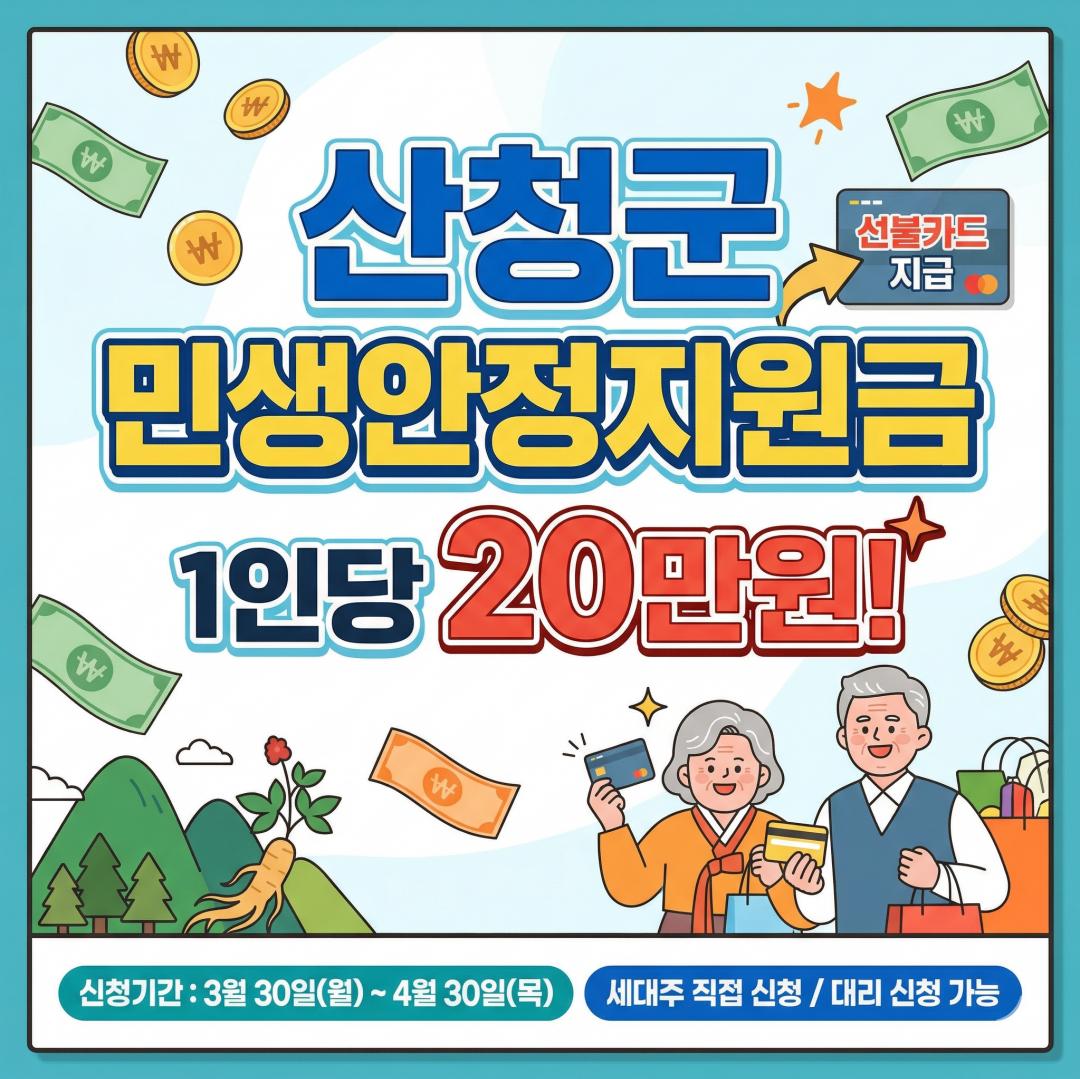산청군 민생안정지원금 신청이 2026년 3월 30일부터 시작됩니다. 대상인데도 기간을 놓치면 1인당 20만 원 혜택을 받지 못할 수 있어요. 아래에서 신청 대상, 기간, 장소, 준비서류까지 한 번에 확인하고 바로 챙겨보세요 특히 이번 지원금은 산청군 전 군민 생활 안정과 지역경제 회복을 위한 정책이라 체감도가 큽니다. 본인이 대상인지 헷갈린다면 지금 바로 기준일부터 사용기한까지 꼭 확인해보는 것이 좋습니다. 마을 현장접수와 읍·면사무소 접수가 나뉘어 진행되기 때문에 일정만 알아도 훨씬 수월하게 신청할 수 있습니다. 아래 핵심 내용을 빠르게 확인해 두세요. 민생안정지원금 바로 신청 산청군 민생안정지원금 핵심 정리 이번 산청군 민생안정지원금은 고물가와 고유가로 커진 생활비 부담을 덜고, 지역 내 소비를 촉진하기 위해 마련된 제도입니다. 산청군은 관련 조례를 근거로 지급을 추진했고, 전액 선불카드 형태로 1인당 20만 원을 지급합니다. 단순한 현금성 지원을 넘어 군민 생활 안정과 골목상권 회복을 동시에 노린 정책이라는 점에서 의미가 큽니다. 지원 대상은 2025년 12월 31일부터 신청일까지 산청군에 계속 주민등록을 두고 있는 군민입니다. 기준일 이후 전입 여부나 주민등록 유지 여부가 중요하므로, 대상 기준은 반드시 본인 상황과 함께 확인해야 합니다. 기사와 안내문 내용을 종합하면 대상 요건은 비교적 명확하지만, 경계 사례가 있다면 읍·면사무소 문의가 가장 정확합니다. 항목 내용 지원금액 1인당 20만 원 선불카드 지원대상 2025년 12월 31일부터 신청일까지 산청군에 계속 주민등록을 둔 군민 신청기간 2026년 3월 30일(월) ~ 4월 30일(목) 사용기한 2026년 9월 30일(수)까지, 이후 잔액 소멸 민생안정지원금 바로 신청 신청기간과 접수 방법은 이렇게 진행됩니다 신청은 1차와 2차로 나뉘어 진행됩니다. 1차는 2026년 3월 30일부터 4월 3일까지 마을별 현장 방문접수 방식으로 운영됩니다. 고령층이나 이동이 불편한 군민 입장에서는 이 현장접수가 매우 실질적인 도움이 될 수 있습니다. 2차는 2026년 4월 6일부터 4월 30일까지 주소지 읍·면사무소에서 접수합니다. 즉, 처음 며칠을 놓쳤다고 해서 끝나는 것이 아니라 4월 말까지는 신청 기회가 열려 있습니다. 다만 막판에는 문의와 방문이 몰릴 수 있어 가능하면 초반 접수를 추천드립니다. 지급도 신청 과정과 밀접하게 연결됩니다. 보도 내용에 따르면 1차 현장접수 기간에는 신청과 지급이 동시에 진행되는 방식으로 알려져 있어, 실수 없이 준비하면 빠르게 받을 가능성이 높습니다. 일정 확인 하나가 생각보다 큰 차이를 만들 수 있습니다. 민생안정지원금 바로 신청 누가 신청하고 무엇을 준비해야 할까요 원칙적으로는 세대주가 본인 신분증을 지참해 일괄 신청하는 방식입니다. 가족 수가 많은 세대일수록 세대주가 한 번에 챙기는 편이 훨씬 효율적입니다. 실제로 이런 지원금은 서류 하나 빠뜨려 다시 방문하는 경우가 가장 번거롭더라고요. 세대원이나 대리인이 신청할 경우에는 위임장이 반드시 필요합니다. 특히 미성년자는 대리 수령이 불가하다는 안내가 있어 이 부분은 헷갈리지 않도록 주의해야 합니다. 세대원이 아닌 가족이 대신 신청할 때는 대상자와 대리인의 신분증, 위임장, 관계증명서류까지 요구됩니다. 신청 유형 구비서류 세대주 신청 세대주 본인 신분증 세대원 대리 신청 본인·세대주 신분증, 위임장 세대원이 아닌 가족 신청 대상자·대리인 신분증, 위임장, 관계증명서류 민생안정지원금 바로 신청 선불카드 사용처와 꼭 알아둘 주의사항 이번 지원금은 현금이 아니라 선불카드로 지급되며, 산청군 내 카드 가맹점에서 사용할 수 있습니다. 사용기한은 2026년 9월 30일까지입니다. 지역 내 소비 촉진이라는 목적이 분명한 만큼, 사용 지역과 기간이 제한된다는 점을 기억해야 합니다. 가장 중요한 포인트는 기한 내 미사용 잔액이 자동 소멸된다는 점입니다. 받는 것만큼 쓰는 계획도 중요합니다. 평소 자주 가는 마트, 음식점, 생활업종 매장 등에서 미리 사용 가능 여부를 확인해 두면 훨씬 실용적으로 활용할 수 있습니다. 신청 전 빠르게 체크할 포인트 첫째, 내가 2025년 12월 31일부터 신청일까지 계속 산청군에 주민등록이 되어 있는지 확인합니다. 둘째, 세대주 신청인지 대리 신청인지 구분해 서류를 준비합니다. 셋째, 1차 현장접수 일정과 2차 읍·면사무소 방문 가능 일정을 미리 맞춰두면 훨씬 편합니다. 문의는 주소지 읍·면사무소 또는 산청군 경제기업과로 하면 됩니다. 경제기업과 문의처: 055-****-6801, 6802. 애매한 경우 혼자 추측하기보다 전화 확인이 시간을 아끼는 가장 좋은 방법입니다. 정리하면, 산청군 민생안정지원금은 2026년 3월 30일부터 4월 30일까지 신청 가능하며, 2025년 12월 31일부터 계속 산청군에 주민등록을 둔 군민에게 1인당 20만 원 선불카드를 지급하는 제도입니다. 놓치지 말아야 할 마무리 산청군 민생안정지원금은 금액만 보면 20만 원이지만, 실제 생활에서는 식비나 생필품 부담을 덜어주는 꽤 현실적인 지원입니다. 무엇보다 신청기간과 서류만 제대로 챙기면 받을 수 있는 제도이기 때문에