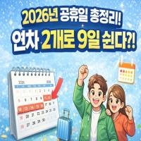 2026년 공휴일과 대체공휴일 총정리 – 연차 2개로 황금연휴 만들기
