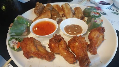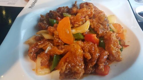 탕수육이랑 모듬튀김(?), 볶음 쌀국수, 쌀국수