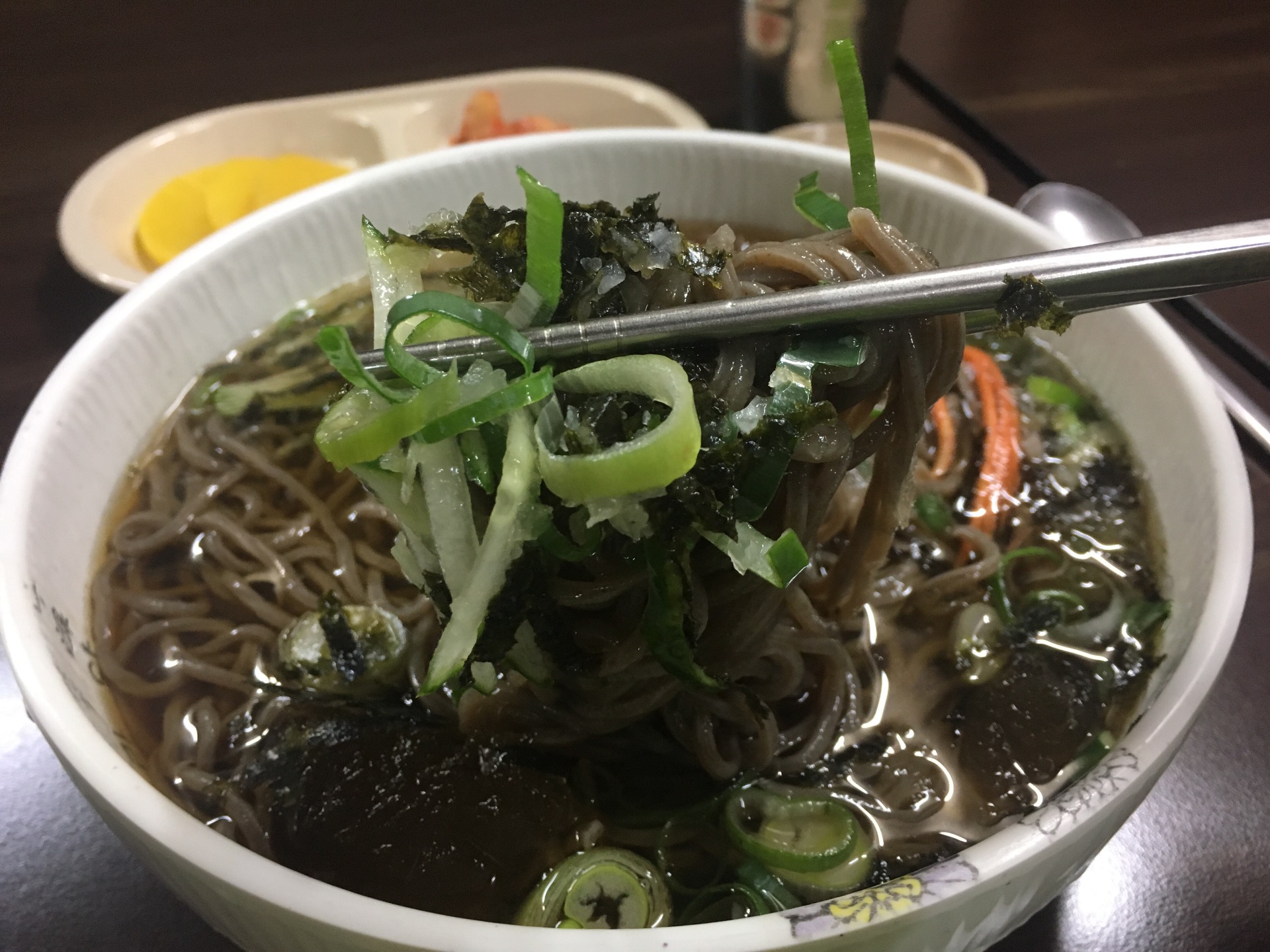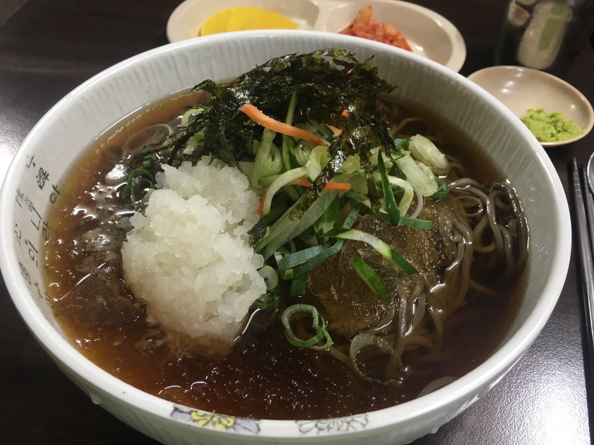 다른 시원한 걸 제치는 모밀의 위력은 저 간 무우에서 나오는 것 같아요. 밖에서 매미 소리가 들리니 더 먹고 싶네요.
