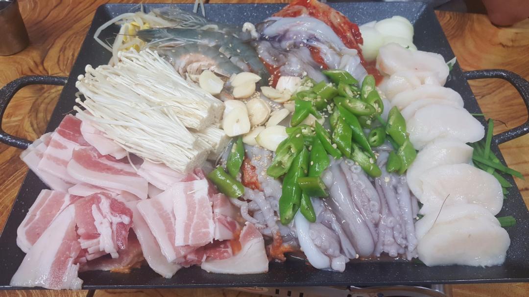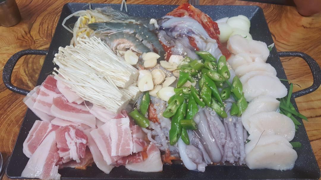 메뉴명은 해물삼합(여수밤바다) 입니다.