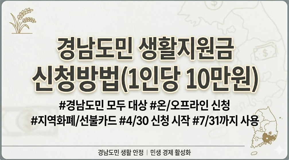2026 경남도민 생활지원금 신청방법, 대상, 기간, 금액 완벽가이드(1인당 10만원)