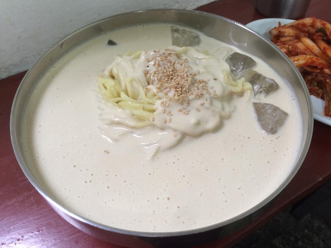 단맛은 완전히 배제되어 있고 음 진주회관의 콩국수에 설탕을빼고 물을약간 첨가하면 비슷할듯