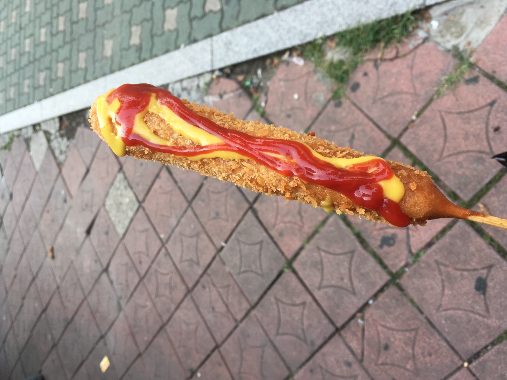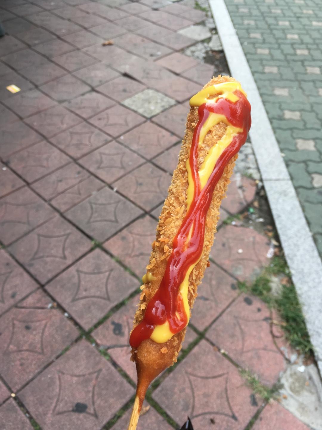 슬림하지만 안에 소시지는 보통 핫도그랑 똑같은 두께에 오히려 더 길어요~ 튀김옷만 슬림해요