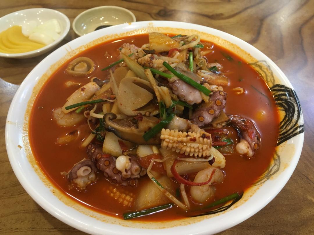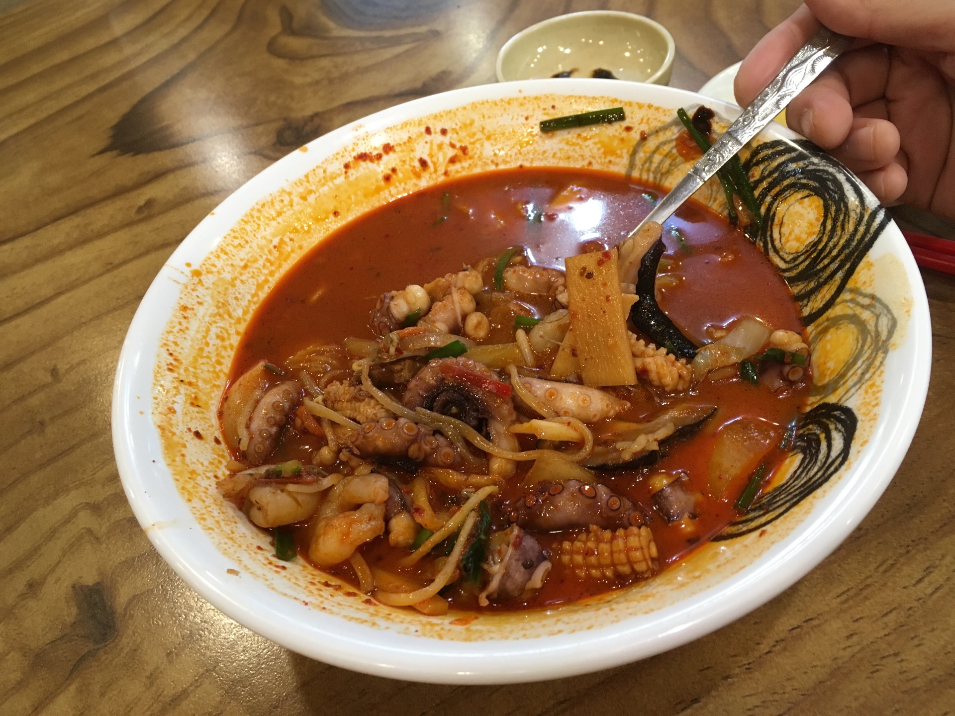 삼선짬뽕인데 낙지와 새우가 한가득에 오징어 죽순 버섯등등이 푸짐합니다