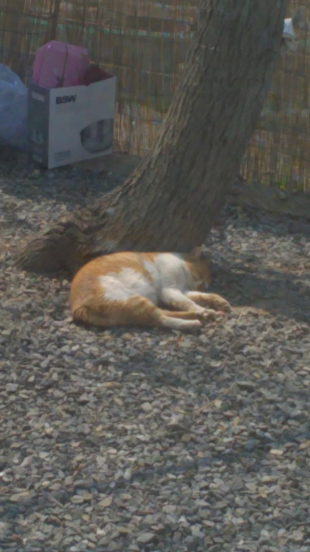한참후에 길냥이는 마당에서 축 늘어져 자고있다가 더운지 아예 집으로 들어가 자고....