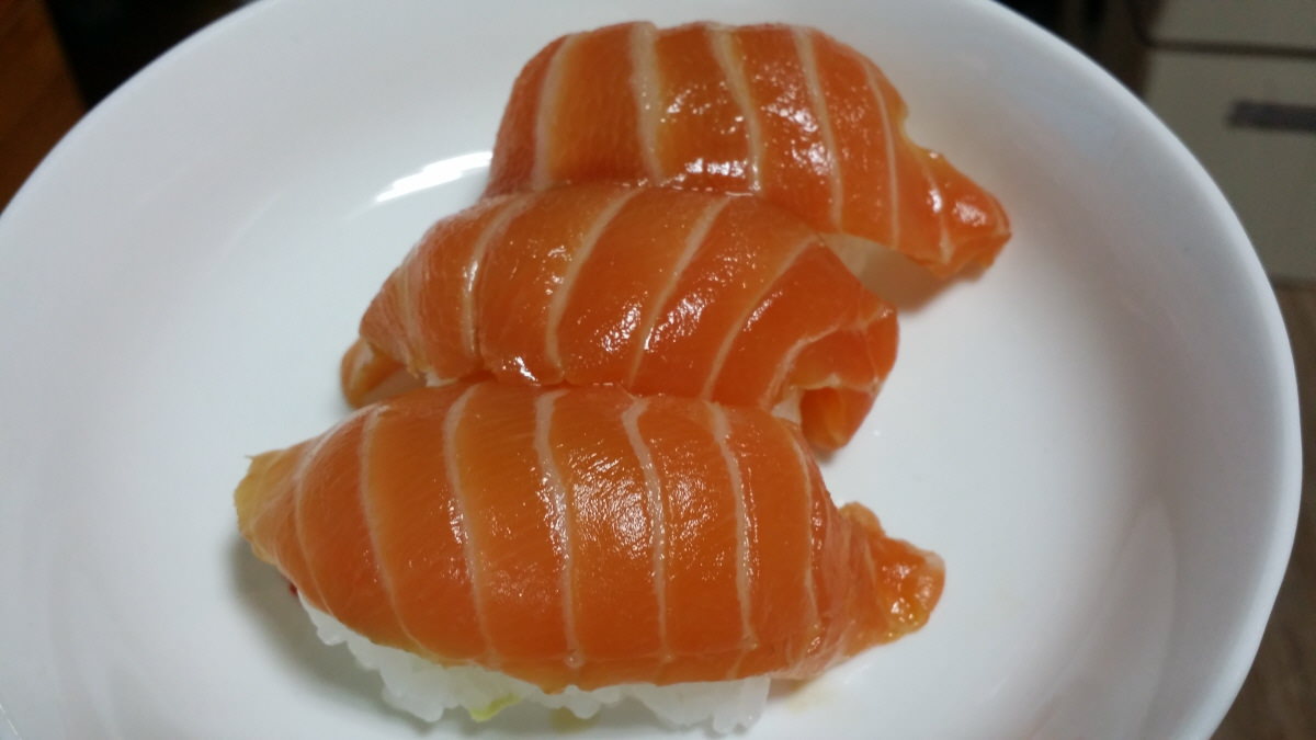 오늘은 연어즈께(절임) 초밥을 만들어 봤습니다.