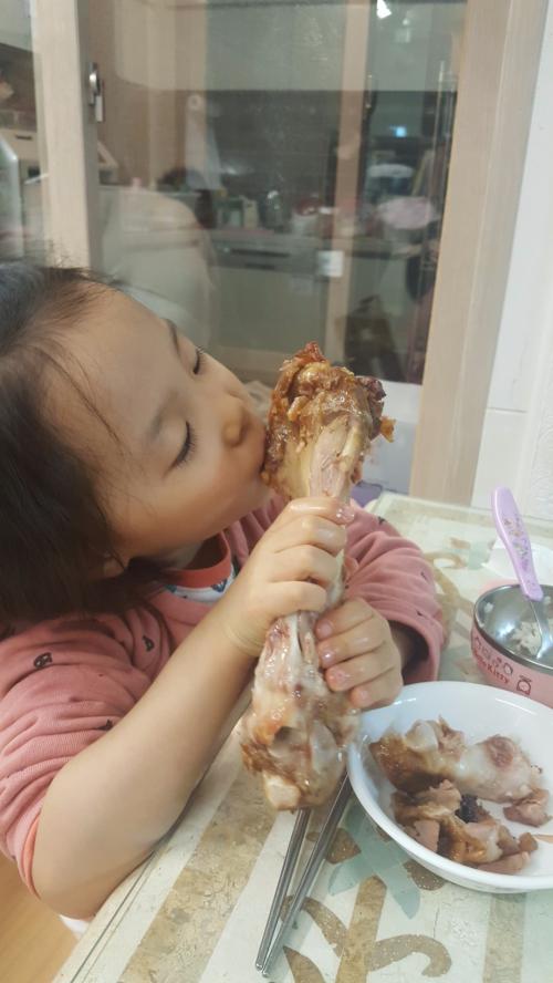 예쁜아이가 족발을 뜯으니 만화같네요 ㅎ
