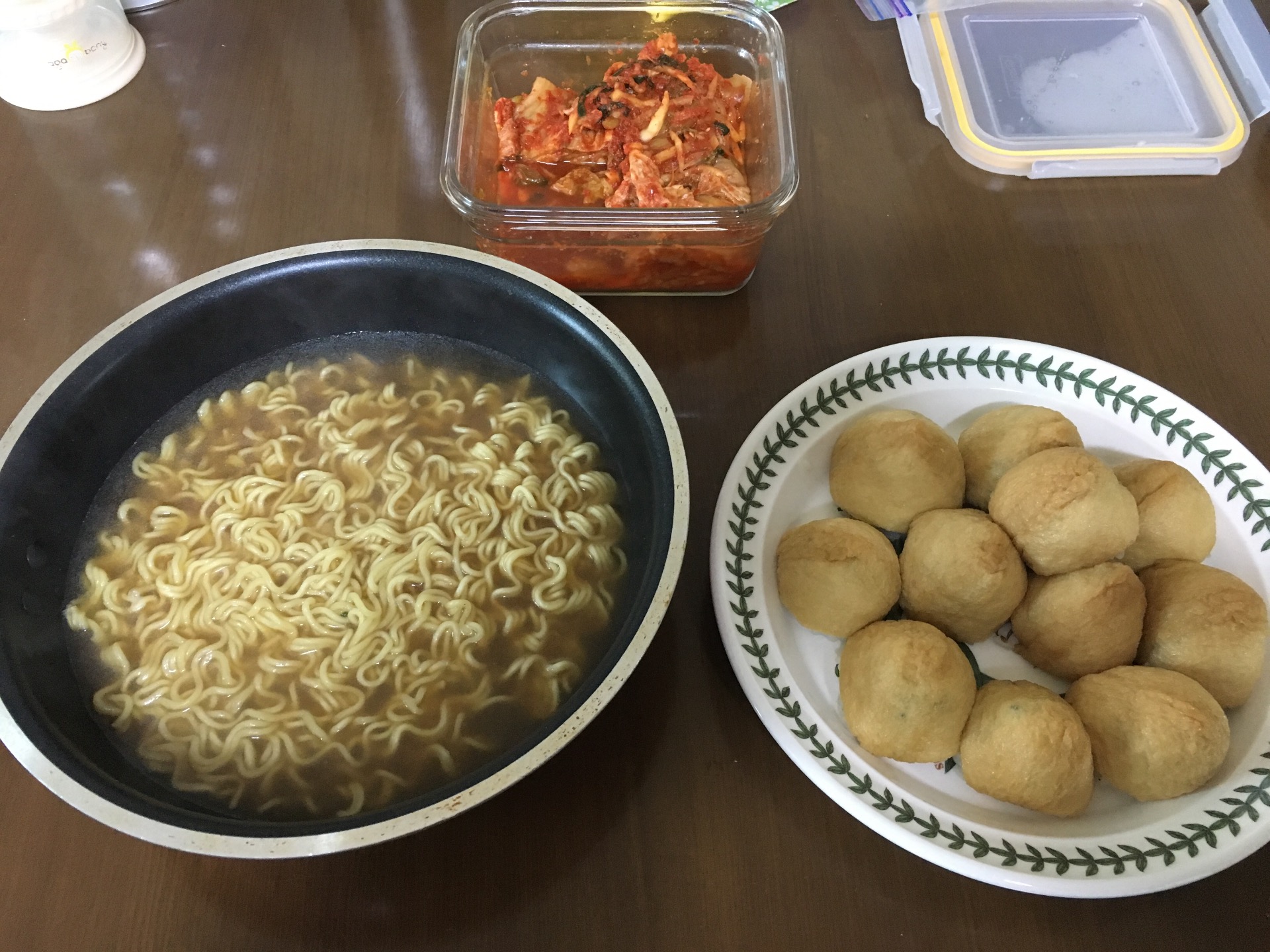 아침부터 마눌님이 유부를 이쁘게 싸주시는 은총에 급히 시오라면을 끓였습니다 ㅋ