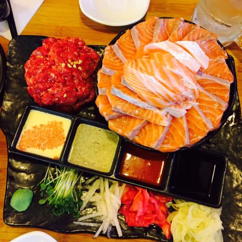 핫 둘이 가서 연어 + 육회 무한리필로 호로록 ! 햤는데