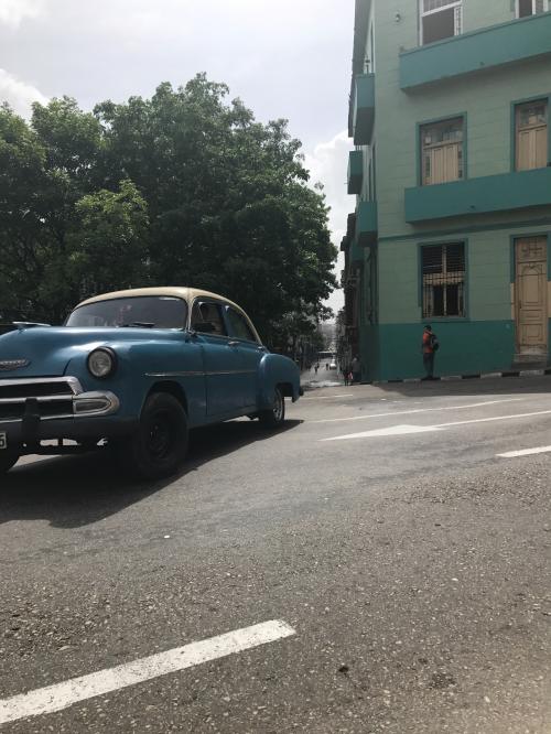 쿠바대학교 앞 삼거리 우회전 하는 차.