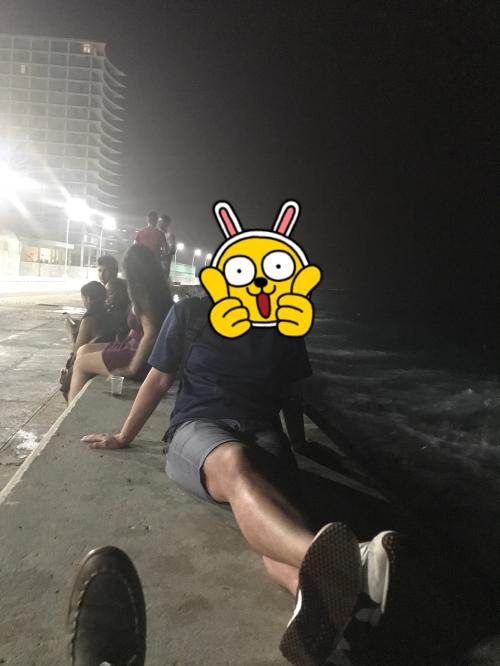 해변가의 둑길 ‘말레꽁’ 삼삼오오 나와서 노는 무리들.