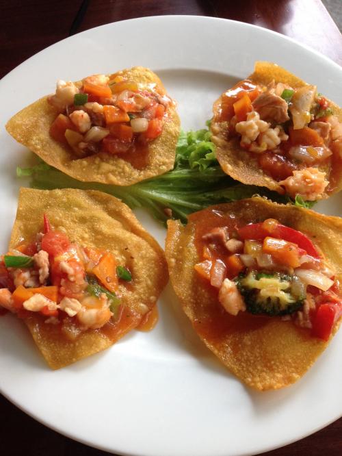 맨위부터 fried wonton, white rose dumpling, seafood fried rice입니다! 또먹고프네요