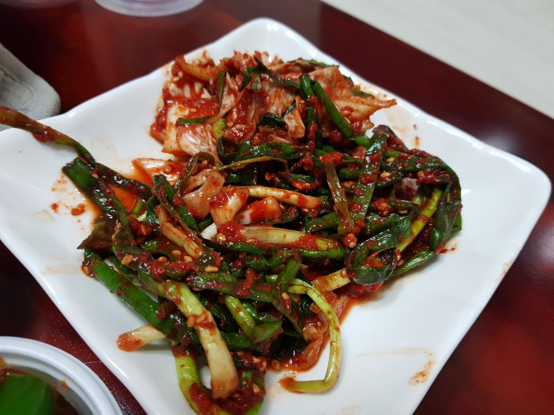 어 순대와 파김치 실하네요.