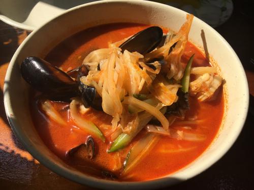 면은 하얗었는데 이야기하면서 좀 천천히 막었더니 짬뽕국물에 불더군요. 막했을때 불지 않은 상태에서 먹어야 좋습니다.