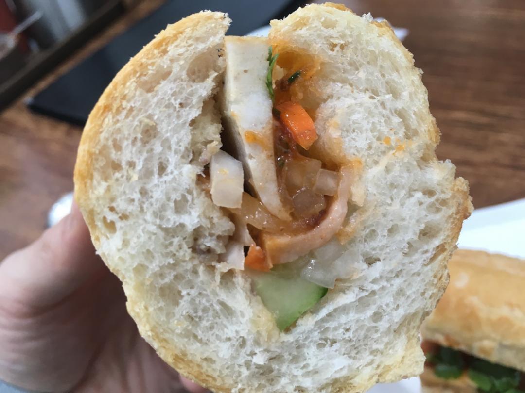 반미는 풍성해보이지는 않지만 빠진게없이 파테 햄 베이컨이 골고루 들어있습니다