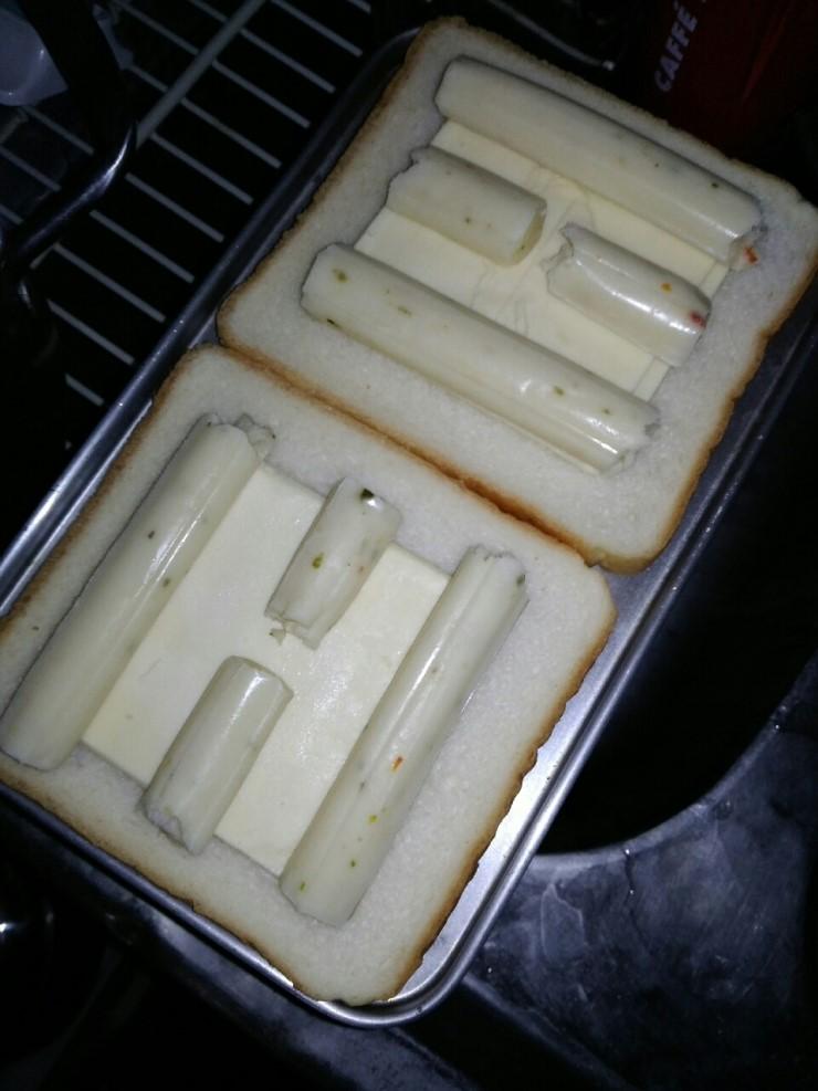 슬라이스 치즈 두장깔고 스트링치즈 두개