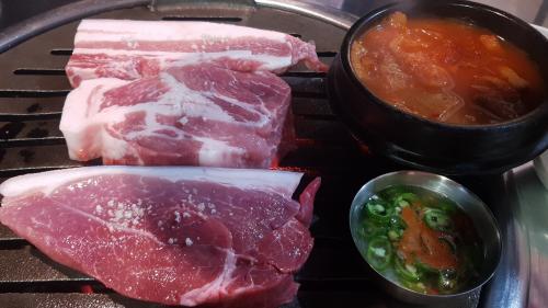 흑돼지는 어쩌다가 백돼지 수급이 안될때만 한정으로 나와요ㅎㅎ