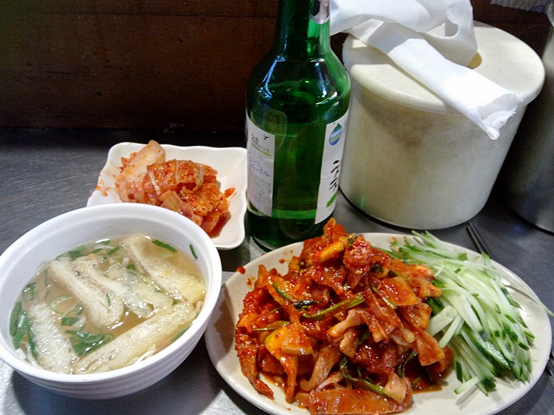 시장통에서 간단히... 안주 + 소주 = 8천원