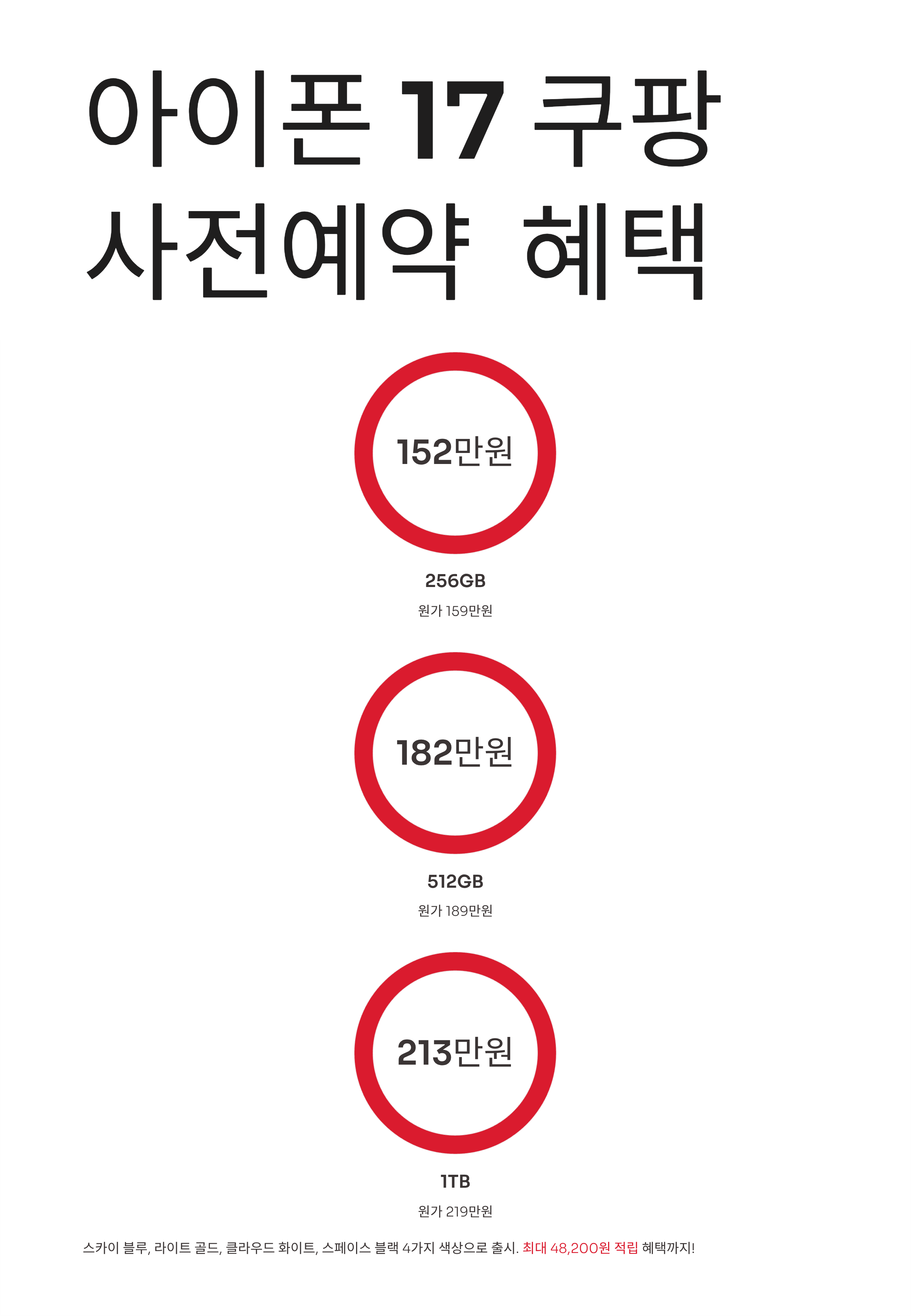 본 글은 아이폰17 시리즈와 쿠팡 사전예약 혜택에 대한 일반적인 정보 제공을 목적으로 작성되었습니다. 실제 상품 정보, 혜택 조건, 배송 일정 등은 쿠팡 및 Apple 공식 안내에 따라 변동될 수 있으니, 반드시 최신 공지를 확인 후 구매를 결정하시기 바랍니다.