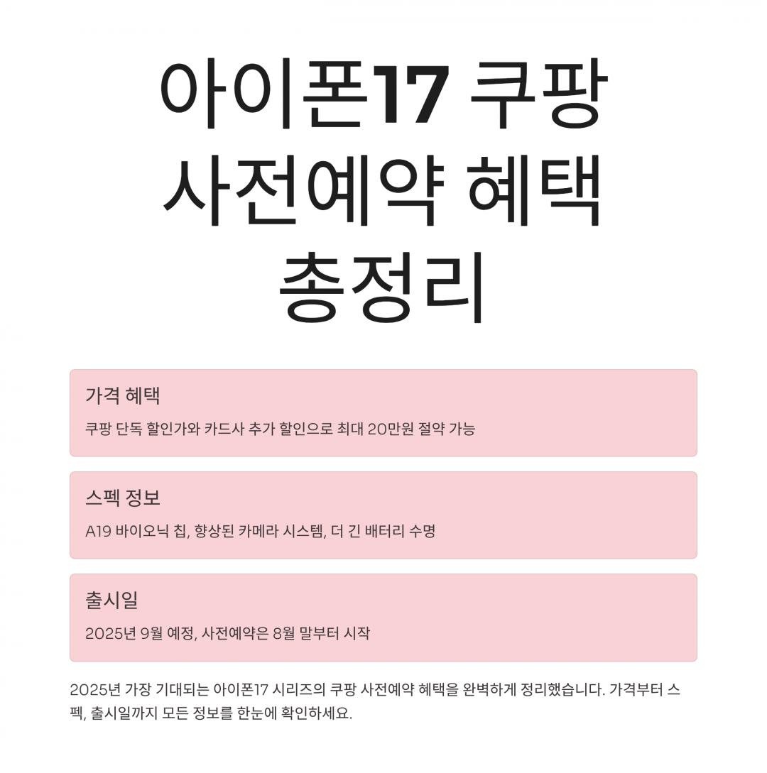 아이폰17 쿠팡 사전예약 혜택 총정리|가격·스펙·출시일