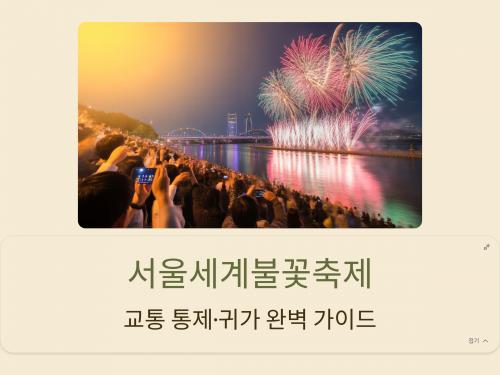 본 글은 서울세계불꽃축제 교통 및 귀가 관련 일반 정보 제공 목적이며, 실제 교통 통제 상황은 반드시 행사 당일 공식 안내를 확인하시기 바랍니다.