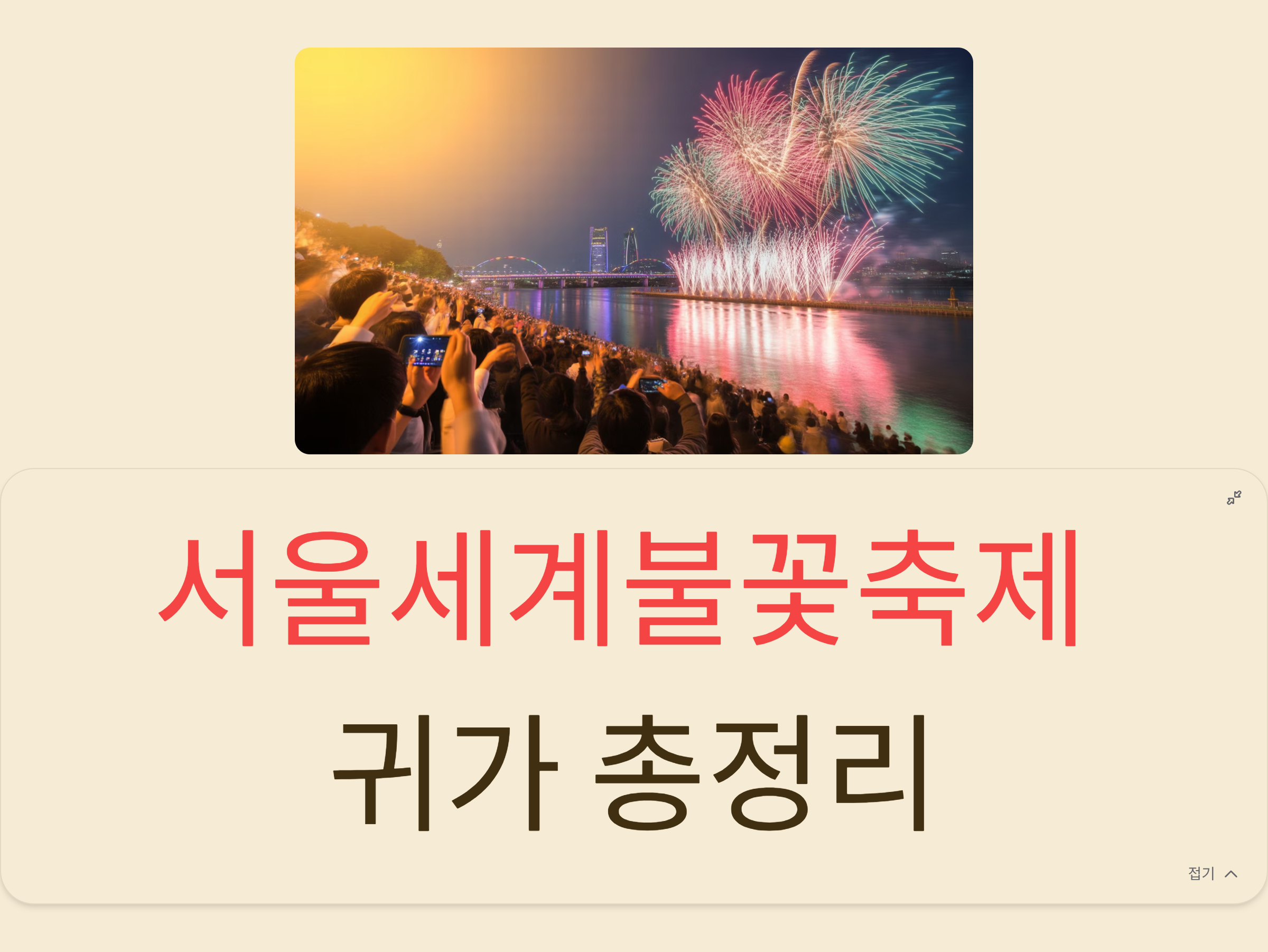 본 글은 서울세계불꽃축제 교통 및 귀가 관련 일반 정보 제공 목적이며, 실제 교통 통제 상황은 반드시 행사 당일 공식 안내를 확인하시기 바랍니다.