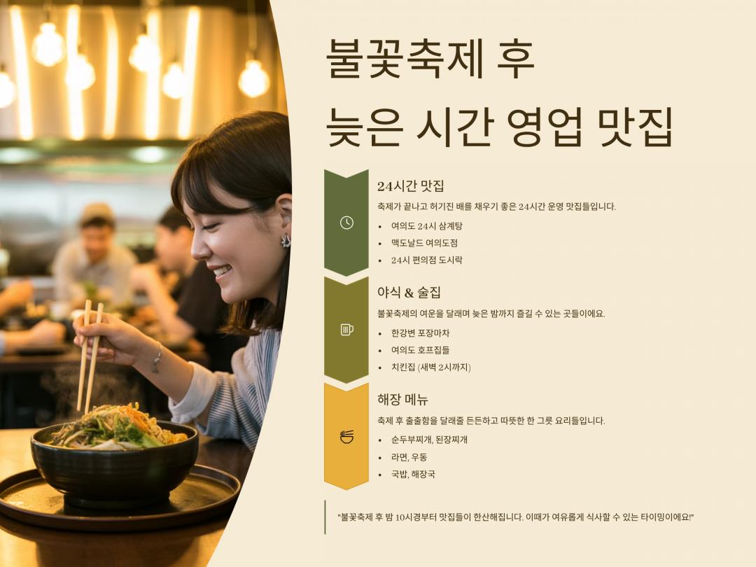 불꽃축제의 즐거움은 좋은 자리에 앉는 것뿐 아니라 맛있는 식사에도 있습니다.