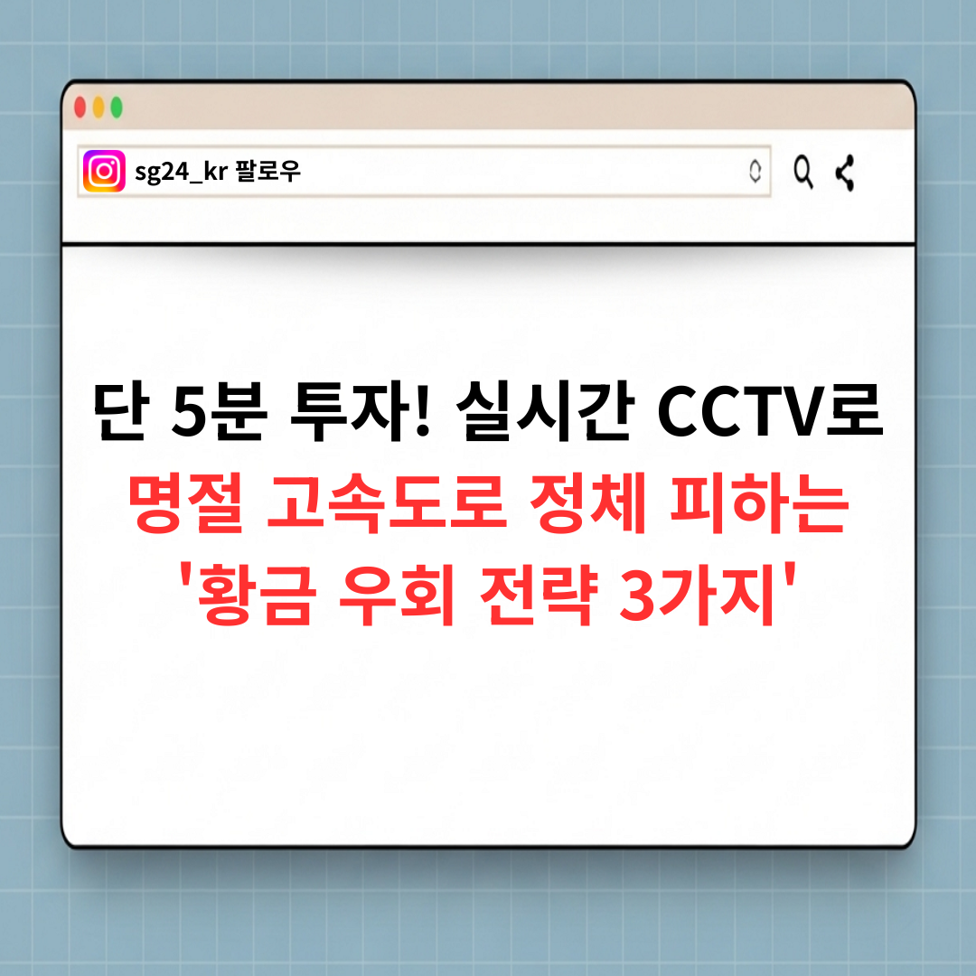 명절 귀성길 정체는 이제 끝! 실시간 고속도로 CCTV 확인은 필수입니다. 한국도로공사 로드플러스, 국가교통정보센터, 네이버 지도를 활용해 정체 구간을 눈으로 파악하고 2시간을 아낄 수 있는 가장 확실한 3가지 방법을 5분 만에 숙지하세요!