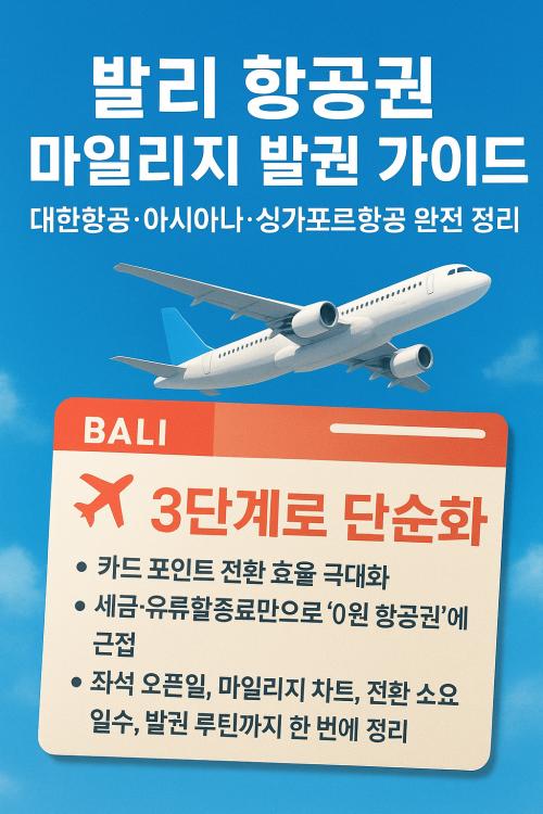 ▶ 발리 항공권 마일리지 발권 가이드|대한항공·아시아나·싱가포르항공 완전 정리