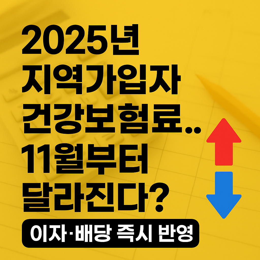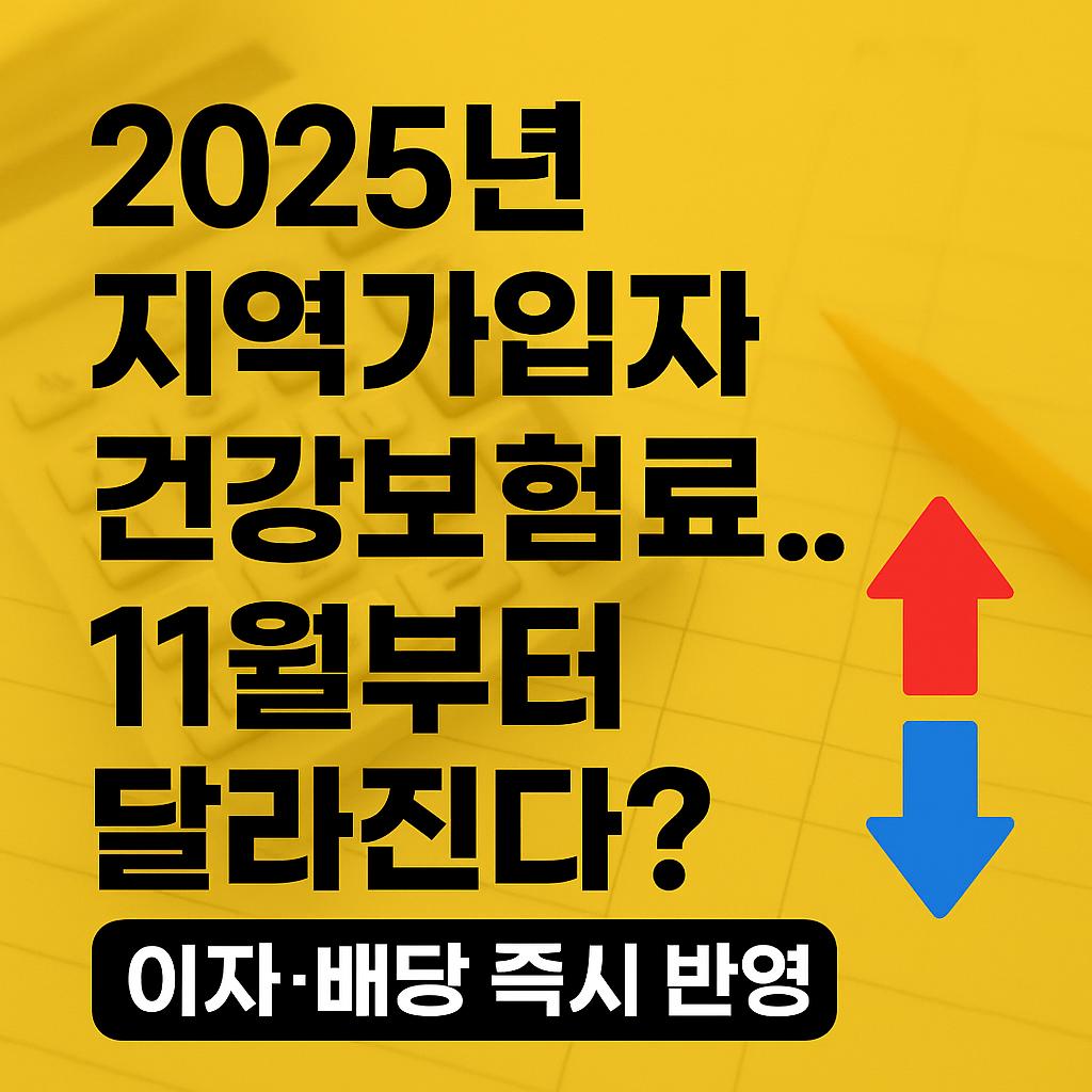▶ 2025년 11월 지역가입자 건강보험료 ‘전면 수정’|이자·배당 즉시 반영… 내 보험료 오르나? 줄어드나? 지금 확인