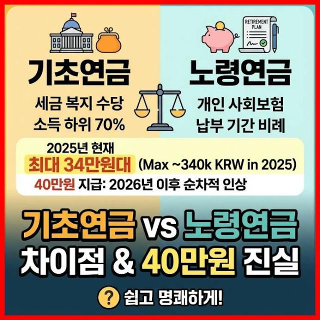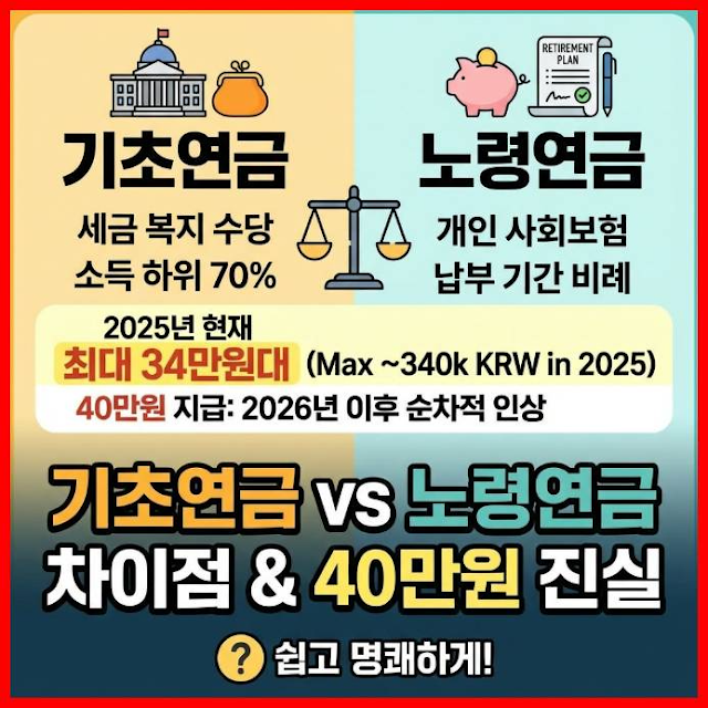 이 글에서는 기초연금과 국민연금 노령연금의 핵심 차이를 쉽게 비교하고, 가장 많이 궁금해하는 기초연금 노령연금 중복수급 가능 여부와 수급조건까지 정리해드립니다.