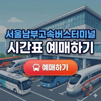 시간표 조회 및 예매는 고속버스 터미널 사이트나 티머니 사이트에서 간편하게 진행할 수 있습니다. 출발지를 '서울남부'로 설정하고 목적지와 원하는 시간대를 선택하면 됩니다. 예매 시에는 탑승 인원과 좌석을 지정하고 카드 정보 및 생년월일, 휴대폰 번호를 입력하여 결제하며, 탑승 시에는 발급받은 QR코드를 이용합니다.