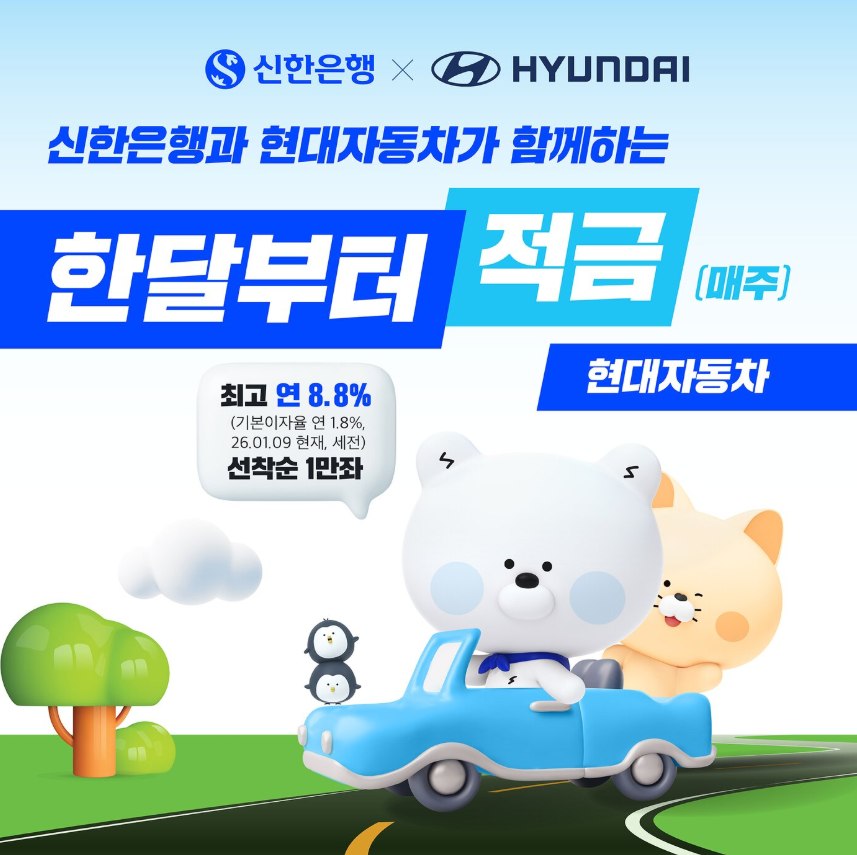 신한은행이 현대자동차와 제휴해 최고 연 8.8% 금리 적금을 출시했습니다.