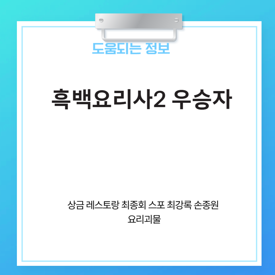 '흑백요리사2' 최종회 스포일러 우승자는 상금과 레스토랑 특전까지 손에 쥐다