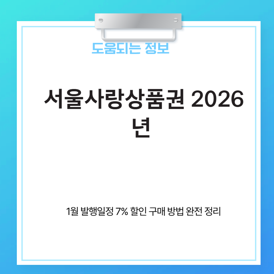 20261월 서울사랑상품권 발행일정 및 7% 할인 구매 방법 완전 정리