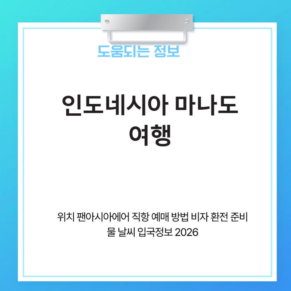 지금부터 마나도 여행 준비를 처음부터 끝까지, 2026년 최신 기준으로 정리해드립니다.