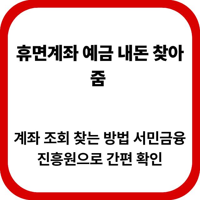 휴면계좌 예금 내돈 찾아줌 계좌 조회 찾는 방법을 2026년 기준으로 정리했습니다. 서민금융진흥원 조회 절차, 지급 방식, 주의사항까지 한 번에 확인하세요.