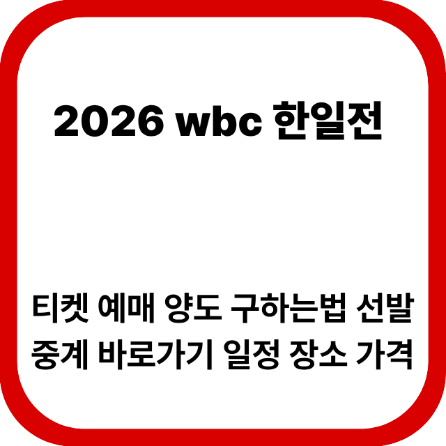 2026 WBC 한일전 티켓 예매 방법과 티켓 양도 구하는 법, 경기 일정·장소·가격·중계 보는 방법까지 2026년 기준으로 정리했습니다. 예매 성공 전략과 주의사항도 함께 확인하세요.