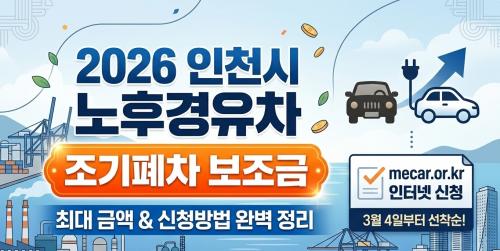 인천에 거주하는 노후 경유차 차주분들, 올해가 5등급 조기폐차 보조금을 받을 수 있는 마지막 기회입니다!
